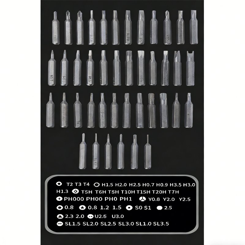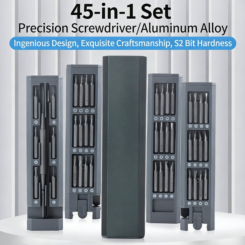 2【45-IN-1 PERFECT KIT】 45-in-1 Professional Precision Screwdriver Set Includes 42 Magnetic Bits, Tweezers, Pry Bar, And An Aluminum Alloy Box. The Casing Features A Built-In Pop-Up Button To Easily Access The Interior Contents With A Light Press. All Sizes Of Bits Undergo Rigorous Quality Control Tests To Ensure Stability, Non-Slip Properties, And Long-Lasting Use.